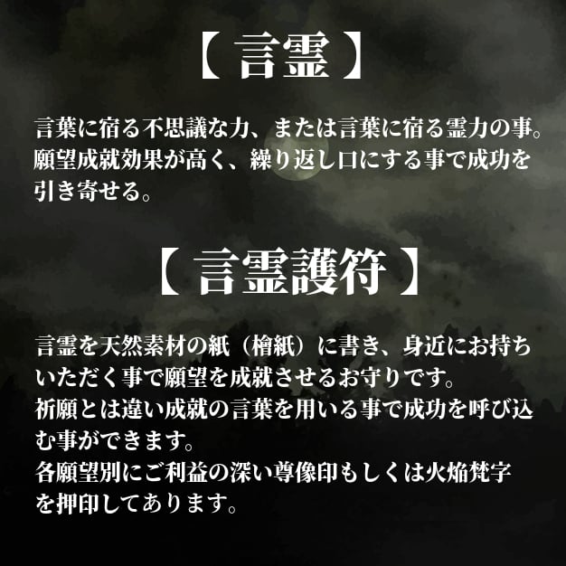 とても強い霊力を持つ言霊ですが使い方を間違えると恐ろしいものになるとしても知られています。「負」の言葉を使用すると跳ね返りが起きるため言霊護符には使用できません。