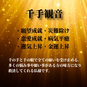 各願望成就別にご利益の深い尊像印、裏面には不動明王(厄払い/開運)の火焔梵字印を押印致します。